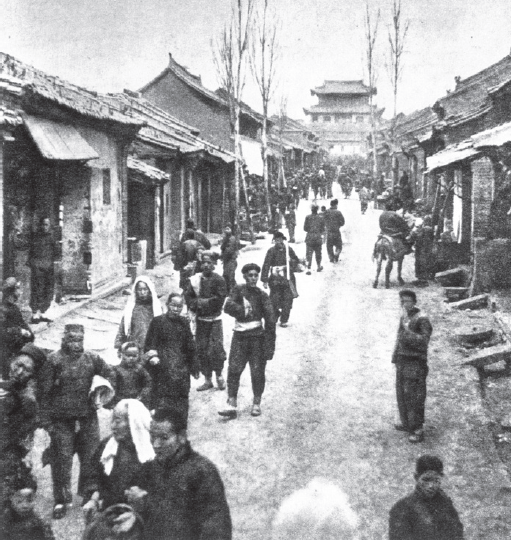 曾經熱鬧的延安古城北大街是延安早期的主要商業地帶,遠處就是古城中心點鼓樓