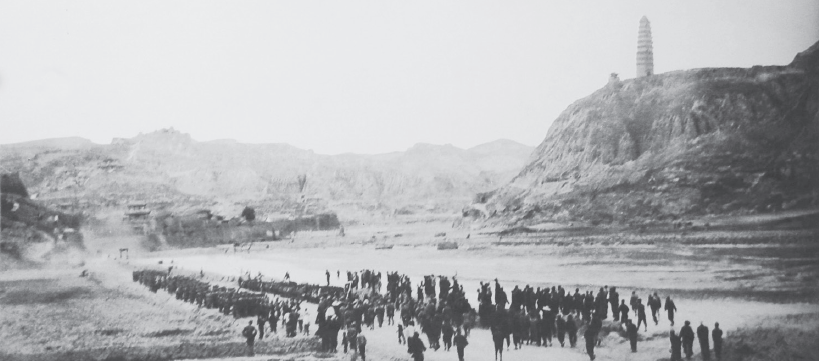 1937年1月,中共中央進駐延安,歷史翻開新的篇章(此圖為后來拍攝電影時組織人員補拍)