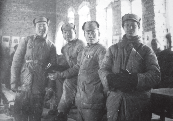 1939年,魯藝木刻工作團成員在太行山抗日前線,左起:羅工柳、胡一川、華山、彥涵