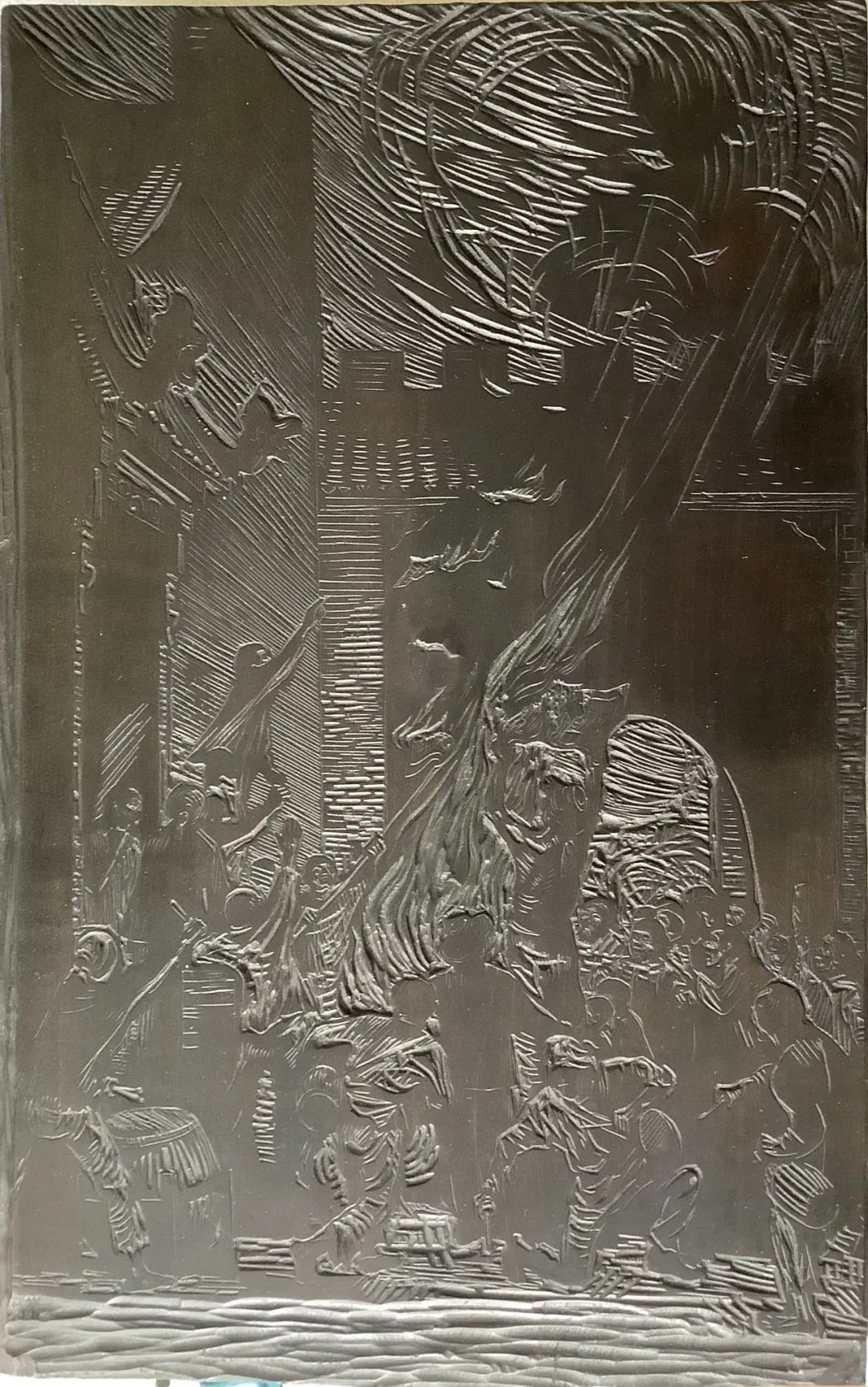 現存延安時期古元唯一的一塊木刻原版《燒毀舊地契》(圖片由古安村提供)