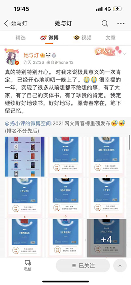 像天瑞說符這樣被“網文青春榜”看到的作者還有很多。年榜作品《觀鶴筆記》的作者她與燈之前從未關注過網絡文學研究界的聲音,她也沒想到評論界能夠透過《觀鶴筆記》愛情的外衣,看到她試圖融入其中的學人精神和歷史思考。“在故事的框架和設定之外,他們抓取到了我想要呈現的那種古今相通的‘文心’,這讓我非常感動。《觀鶴筆記》能夠登上年榜,對我來說意義重大,因為它在我的寫作歷程中本身也是一部很有階段性意義的作品。” 她與燈感受到了評論界的專業性和前沿性,她期待“網文青春榜”能夠帶給更多作者被發現和深度解讀的機會,傳遞這一代作者的想象力與青春經驗。