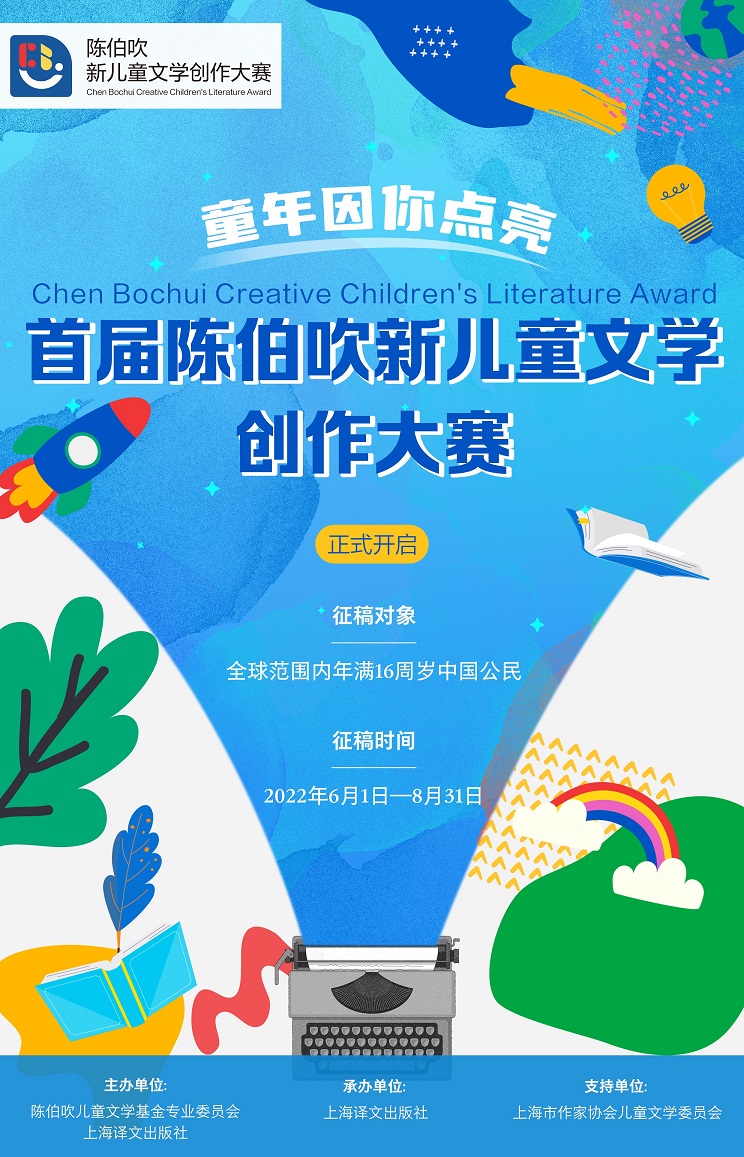 六一國際兒童節這一天,為推動原創兒童文學的持續性發展,發揚上海兒童文學創作與出版的傳統及優勢,由陳伯吹兒童文學基金專業委員會和上海譯文出版社共同主辦、上海市作家協會兒童文學委員會支持、上海譯文出版社承辦的2022年首屆“陳伯吹新兒童文學創作大賽”正式拉開帷幕。