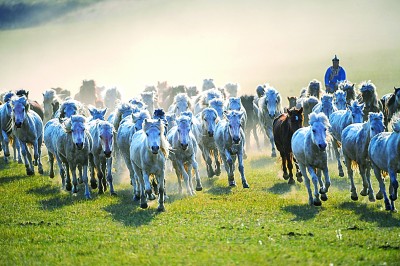 夏日草原奔馬 新華社記者 彭源攝