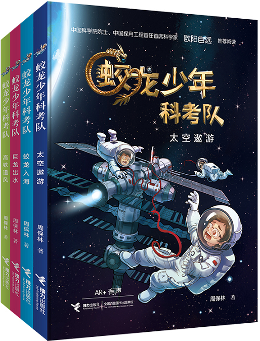 “蛟龍少年科考隊”系列是由北京市科學技術協會“科協頻道”、《保林叔叔講故事》欄目、接力出版社共同打造的小學生科普讀物,共4冊,包括航天航空故事《太空遨游》、深海探測故事《蛟龍入?!?、高速鐵路故事《高鐵追風》、跨海大橋故事《巨龍出水》。書中,科考隊員徐多、韋一和小機器人搗亂跟隨隊長保林叔叔上天入海,在科學的世界里盡情地探索。故事跌宕起伏、懸念迭生,充滿基于尖端科技理論的奇異幻想,書中穿插的128個科學知識點,全部由四大領域的科學家提供和審訂。
