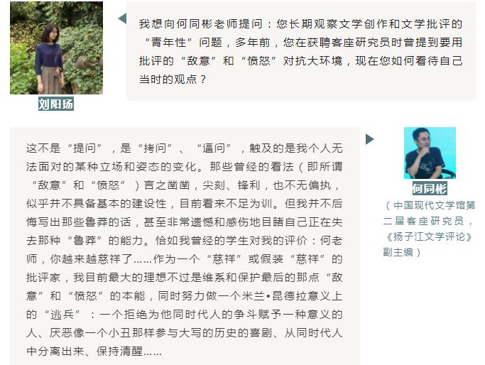 胡妍妍:有方位感,清楚自己在什么樣的歷史脈絡(luò)、現(xiàn)實(shí)視野和價(jià)值立場(chǎng)所確立的坐標(biāo)上開(kāi)展研究和批評(píng);有真問(wèn)題,最好是那些和自己的思想關(guān)切、閱讀興趣、生命體驗(yàn)有深刻糾纏的問(wèn)題;對(duì)得起“文學(xué)”二字,無(wú)論是文學(xué)研究和文學(xué)批評(píng),都建立在批判性地閱讀和寫(xiě)作基礎(chǔ)上,不管是從美學(xué)的、理論的還是從思想史、社會(huì)史的角度進(jìn)入,最后的輸出一定是一種寫(xiě)作——有判斷力、有高度智識(shí)含量、讓人們?cè)俅巍岸ňΑ蔽膶W(xué)的寫(xiě)作。文學(xué)是有益于社會(huì)人生的,希望文學(xué)研究和文學(xué)評(píng)論也能如此。