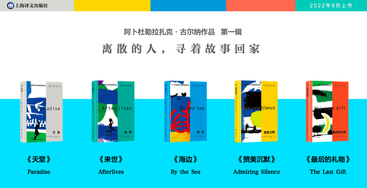 諾獎(jiǎng)消息公布后,取得了古爾納十部作品的中文簡體翻譯出版權(quán)。上海譯文出版社取得古爾納十部作品的中文簡體翻譯出版權(quán),包括《離別的記憶》(Memory of Departure 1987)、《朝圣者之路》(Pilgrims Way 1988)、《多蒂》(Dottie 1990)、《天堂》(Paradise 1994)、《贊美沉默》(Admiring Silence 1996)、《海邊故事》(By The Sea 2001)、《遺棄》(Desertion 2005)、《最后的禮物》(The Last Gift 2011)、《礫心》(Gravel Heart 2017)、《來世》(Afterlives 2020)。其中,《天堂》入圍1994年布克小說獎(jiǎng),《遺棄》入圍2006年聯(lián)邦作家獎(jiǎng)。