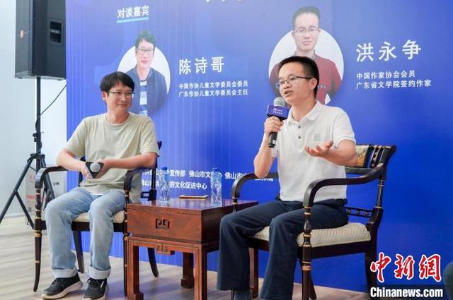 作家陳詩哥、洪永爭22日下午亮相2022南國書香節佛山分會場,圍繞“中國兒童文學的灣區時間”主題,向大小讀者分享了創作經驗。