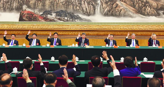 隨后,會議在習近平同志主持下進行了各項議程。會議以舉手表決方式通過了丁薛祥、陳希、郭聲琨、黃坤明為大會副秘書長。