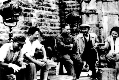 從右至左:于藍、趙丹、汪洋(原北影廠廠長)、導演水華、攝影師朱今明 中國電影資料館供圖