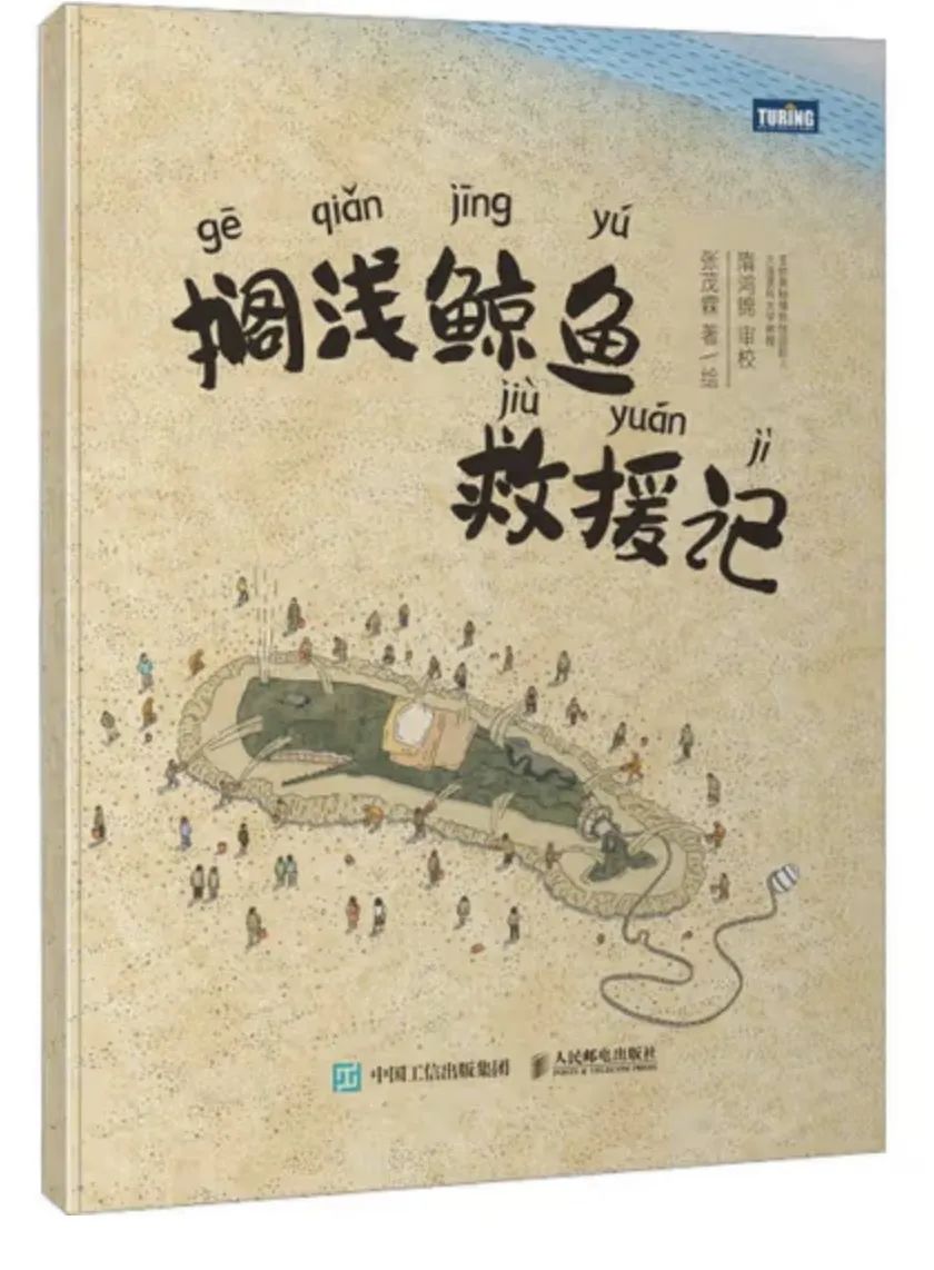 這是一個從一開始就讓人感到十分緊張的故事:頭龐大的抹香鯨擱淺在海灘上,人們想了各種辦法卻無法挪動分毫,隨著黃昏海水退潮,鯨的狀態越來越差,很多人開始擔心它活不過這個夜晚,因為此前我國沒有成功救援大型擱淺抹香鯨的案例。但聞訊趕來的人們并沒有放棄,他們一邊努力為它降溫療傷,一邊等待海水漲潮,直到三艘小型漁船緩緩將抹香鯨拖入深海。這個改編自真實事件的繪本很好地平衡了故事性和科普性,一方面用質樸的語言描繪了人與動物之間的溫情相處的和諧畫面,一方面用淺顯易懂、見縫插針的方式普及了相關海洋和鯨類的知識,無論是成年人還是少兒讀者,都能在其中愉快地閱讀并且收獲知識,感受到人與自然萬物和諧共生的價值意蘊。