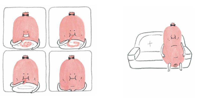《香腸爺爺》的故事發生在一個遙遠的星球,在這個星球上居住著許多人們日常所見的生活用品,有茶壺茶杯母子、老式電話夫婦、蠟筆兄弟等等,香腸爺爺也在這里出生,長大,變老。直到香腸媽媽的離世,香腸爺爺開始了寂寞的獨居生活。一日,被遺棄的小狗的出現,打破了香腸爺爺原有的生活,在小狗的陪伴下,他開始變得有了牽掛,擔心失去,害怕離別。作者安寧達用四個章節來構建這個故事。第一章是香腸爺爺的誕生,第二章是香腸爺爺和小狗的相遇,第三章是香腸爺爺和小狗的告別,第四章是香腸爺爺死后在另一個星球上的生活。故事的展開一氣呵成,每個人都能讀到自己曾經歷的那些悲歡離合,從中體會生命的意義,并得到溫暖的慰藉。