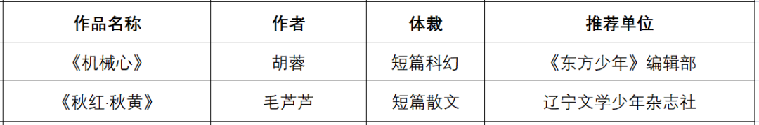 短篇或單篇兒童文學作品提名獎