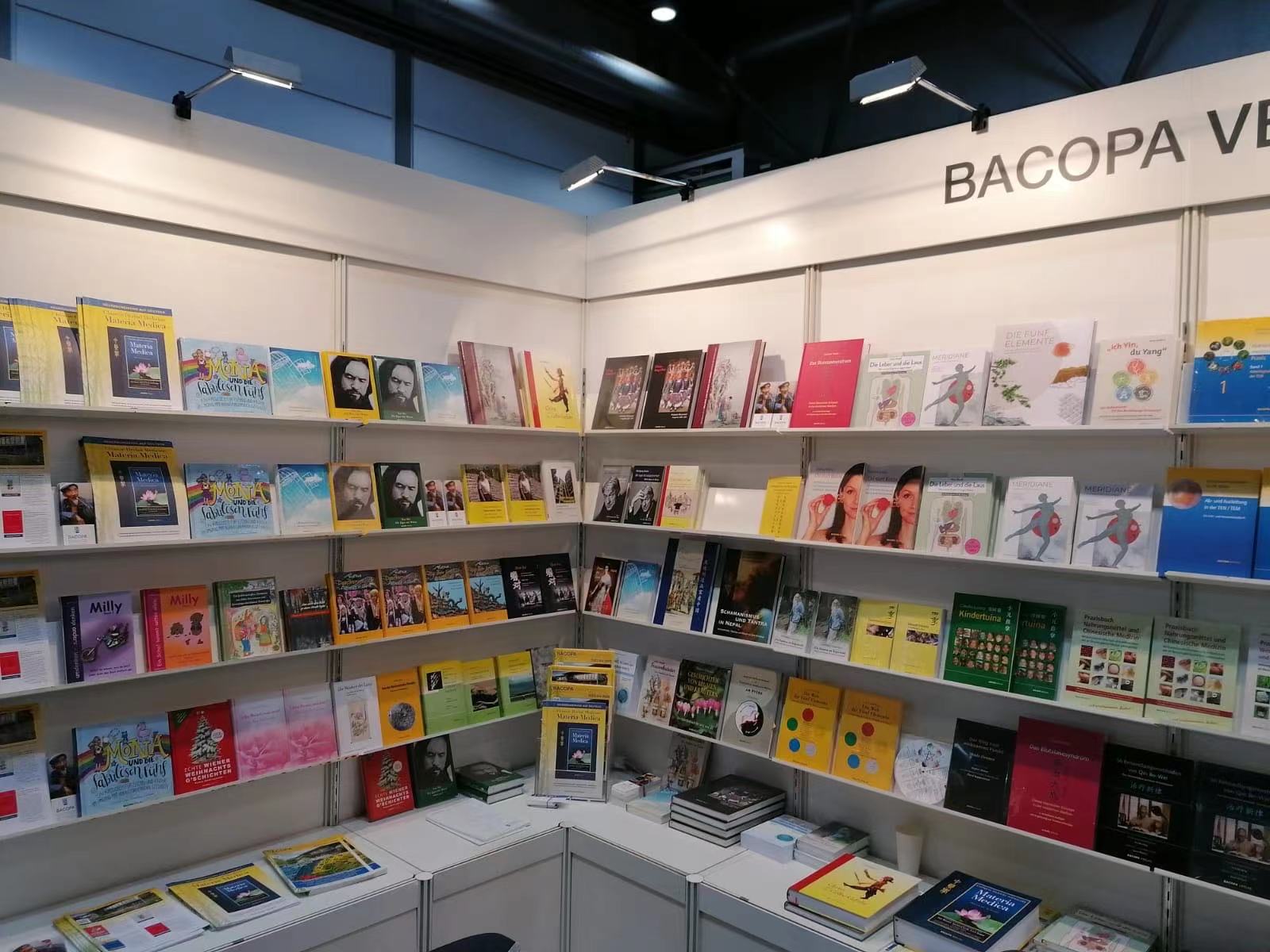 書展的主會場為不同的出版社劃片區域,展示產品,并為作家們提供分享作品和探討觀點的場地。奧地利八棵葩出版社BACOPA VERLAG攜包括歐華德語小說集在內的各類出版物,回歸闊別四年的書展,意義非同尋常,亦是展會的一個亮點。