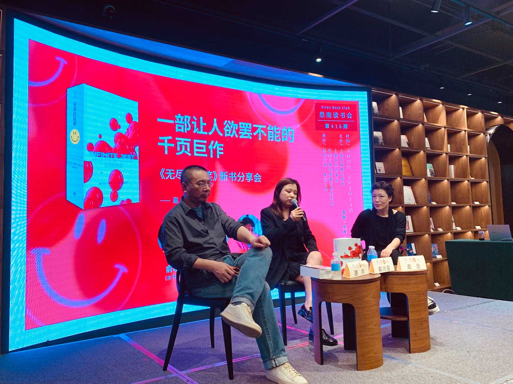 《無盡的玩笑》翻譯難度極高,它在全球售出25種語言版權,至今僅有10種語言譯本。今年4月,《無盡的玩笑》中譯本終于由世紀文景出版。5月27日,本書譯者俞冰夏與作家路內、走走相聚于位于上海黃浦區的思南文學之家。一起暢談應當如何閱讀這本讓很多讀者都感到有難度的書,以及作家華萊士的生平故事與1990年代美國流行文化如何孕育了這本書。