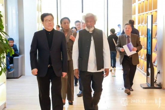 十二月四日,我再一次送別了索因卡。看著他身穿藍色對襟衫的熟悉身影漸漸遠去,我卻并不傷感,雖然這次已屆鮐背之年的索因卡甚至沒有像上次那樣,和我說“期待下次再見”。因為我知道,在阿貝奧庫塔的密林中,重新當回獵人的索因卡必會快樂地延續他的文學傳奇人生,而他在上海留下的足跡和音聲則將繼續施惠于我們,讓我們即使與他相隔萬里,仍可隨時叩響他的智慧心門,聆聽這位非洲世紀老人的深邃思想,并且不斷推動中國與非洲兩大文明走向互相理解與欣賞的光明未來。