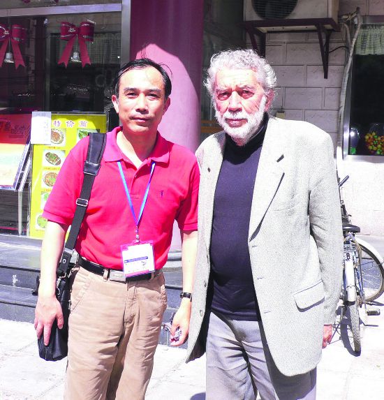 那是在1984年。他來中國訪問,在北京期間,我陪他及夫人游覽故宮。從三大殿出來我們坐在一個石頭臺階上歇腳。正好,對面不遠處有一老一少兩個中國游客,也席地而坐休息。老的約摸有五十來歲,黑紅臉,戴一頂舊草帽,粗布衣衫,年輕的二十來歲光景,瘦瘦的,一件白的確良襯衣,像是爺兒倆模樣。見我們正談笑風生,這一老一少便目不轉睛地盯著我們看。這時,我對羅伯-格里耶說:“瞧,有人在注意你了。” 羅伯-格里耶仔細打量了一會兒坐在十米開外的那二位,不慌不忙地說:“你是說那師徒倆啊?!?他還補了一句“老先生恐怕是個搞藝術的吧?!焙髞?,當我客客氣氣地詢問那位老先生的職業時,他回答說,他是山東某地一個師范學校的老師,教的是繪畫。羅伯-格里耶的眼睛,這也太神了吧。我雖然知道作家的眼睛一般都很敏銳,但能一眼看出對方是個“搞藝術的”,那眼睛實在“毒”。作為法國新小說派的領袖人物,羅伯-格里耶作品的出名,在于對物的“純客觀”描寫,對物的“準確”記錄。也許是他早年當過農藝師,后來又是電影家的緣故,他的小說作品對物的描寫特別細致。我想,這與他敏銳的觀察力、與他特“毒”的眼睛有關。