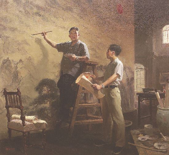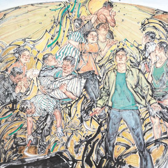 如果以進(jìn)京作品展作為此屆全國(guó)美展的藝術(shù)水準(zhǔn)刻度,還是頗令人欣慰和驚喜的。在中國(guó)美術(shù)館中央圓廳的正中,觀眾可以看到表現(xiàn)富有新時(shí)代農(nóng)民精神特質(zhì)的作品《暖》和《金色土地》。李傳真與吳筱蘅合作的工筆重彩《暖》刻畫(huà)細(xì)致,展現(xiàn)了當(dāng)代工筆畫(huà)多材料介入形成的深入塑造能力;沈曉明的寫(xiě)意人物《金色土地》,試圖在造型的生動(dòng)性與筆墨的寫(xiě)意性之間構(gòu)成的一種表現(xiàn)語(yǔ)言的平衡。從前者畫(huà)面中農(nóng)民工在城里歡度中秋節(jié)并與遠(yuǎn)方村里孩子們視頻聯(lián)線的場(chǎng)景所反映的當(dāng)代農(nóng)民工生活質(zhì)量的提升,到后者表現(xiàn)收獲季節(jié)農(nóng)民工再度返鄉(xiāng)收割的景象所營(yíng)造的金色土地意象,兩幅畫(huà)作包含了豐富而深刻的圖像母題的社會(huì)學(xué)內(nèi)涵。近年來(lái),大型主題性創(chuàng)作項(xiàng)目也深度影響了當(dāng)代美術(shù)的創(chuàng)作理念,李前的油畫(huà)《工人是“天”》所建構(gòu)的李大釗在北京長(zhǎng)辛店傳播革命思想的歷史圖景,展現(xiàn)了歷史畫(huà)如何發(fā)掘素材還原歷史真實(shí)的藝術(shù)創(chuàng)造性;而孫妍的雕塑《同唱》以浪漫主義情懷塑造出一群女文工團(tuán)團(tuán)員,讓人們感受到革命戰(zhàn)爭(zhēng)年代文藝工作者滿(mǎn)懷青春斗志。不論是歷史人物還是無(wú)名戰(zhàn)士,這些歷史題材創(chuàng)作通過(guò)人物形象刻畫(huà)所體現(xiàn)的主題立意無(wú)不具有激發(fā)人們繼續(xù)奮斗的藝術(shù)感染力。歷史畫(huà)從來(lái)都不完全是對(duì)歷史片段的客觀復(fù)制,而總是以當(dāng)代視角賦予其鮮活的現(xiàn)實(shí)形態(tài)。因此,視覺(jué)新質(zhì)并非只是視覺(jué)感觀的新銳,而是對(duì)視覺(jué)背后深掩的思想礦藏的發(fā)掘。