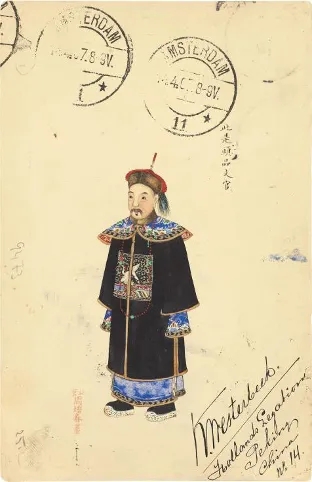 清二次片,周培春繪《頭品文官》,郵路:1907年2月28日經北京的德國客郵局收寄,于同年的4月14日到達荷蘭的阿姆斯特丹