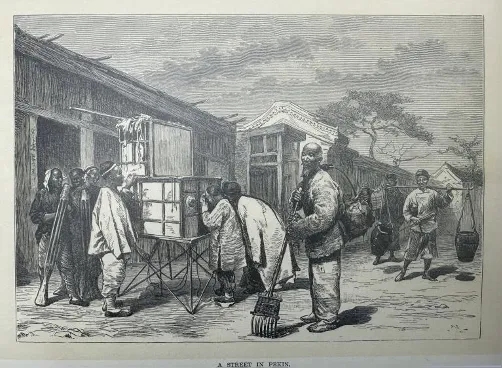 在學者卡爾·克羅斯曼的研究中,周培春的畫被歸為“貿易裝飾藝術”,結論應該屬于他的生涯后傳。當年梅蘭芳赴美演出,為了更直觀地介紹中國戲劇,齊如山邀請華麗工致風格畫家,為劇目定制了成套的表演分解圖,現場展示給美國觀眾,其來歷屬于同一種情況,即宮廷職業畫家轉入實用社會服務。周培春無疑是再就業的成功代表,他之所以留下了姓名,還是由于其靈活的商業頭腦,即便小小的手繪明信片生意,也沒忘了在上面廣而告之,鈐印“北京周培春畫”,邊上還附帶售賣地點,“順治門外達智橋內西口迤南”,便是今天的宣武門附近。當年,為方便宮內外走動,供奉清廷的低端人員多擇居這一帶,各行各業的商鋪集市匯聚在“南城”,熱鬧非凡。附近還有一個傳教士湯若望建造的天主教堂,俗稱“南堂”,可以想象,洋人趁禮拜到附近逛街,順便將空白明信片交給胡同里的畫家,叮囑所需的內容,或者在店鋪里挑選一些有趣的“成品”帶回去,寫信,寄送,向國際散播一樁樁輕如鴻毛的“事件”。