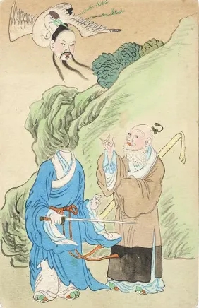 獵奇在繼續,該輪到神話出場了,這也是手繪明信片通常引用的類型,各地均有出神入化的例證。雖然傳說、仙道和戲曲故事不是現實世界,但畢竟寄托了人們的精神幻想,訂制者也樂于沉迷于古老的夢境之中。在制作這類題材時,即便范本在前,畫家仍能憑借想象力天馬行空,不時得神來之筆——童子馭龍、童子馭鳥固然討彩頭,但遠不如虛構人物更易于放浪形骸:“西游記”師徒中的孫悟空,伸出極夸張的大長腿,有著即興描繪時的痛快淋漓;《封神演義》的申公豹,頭顱可怖地在空中飄蕩,要是聯想到這些圖像作于改朝換代的一九一三年,就不難理解其魔幻的現實依據,正是城頭變幻霸王旗的亂世斗法,與街頭大變活人的魔術戲法一樣,不過是紙上顯靈的活報劇而已。
