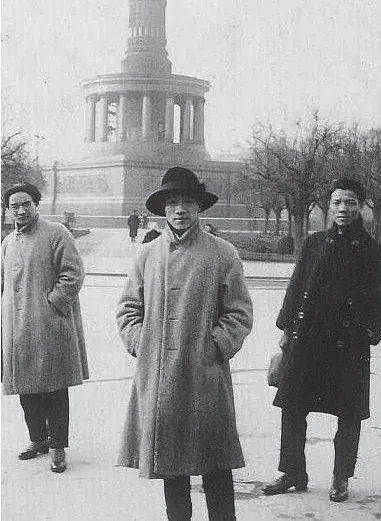 1923年,李金發(fā)(左)與林風(fēng)眠(中)、林文錚(右)在柏林