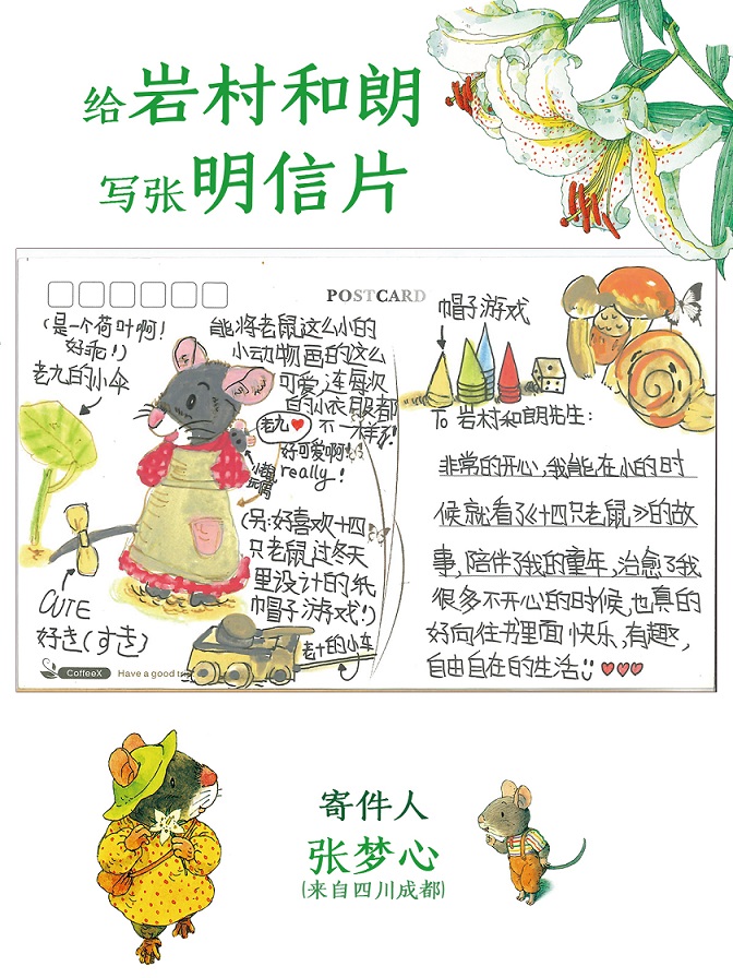 活動(dòng)期間,我們收到了大量飽含深情的明信片,其中來(lái)自孩子們的信件尤其令人動(dòng)容。那一筆一畫稚嫩卻又無(wú)比真誠(chéng)的話語(yǔ),字里行間滿是對(duì)巖村和朗的喜愛(ài)與不舍,讓我們深切感受到巖村和朗作品的深遠(yuǎn)影響力。