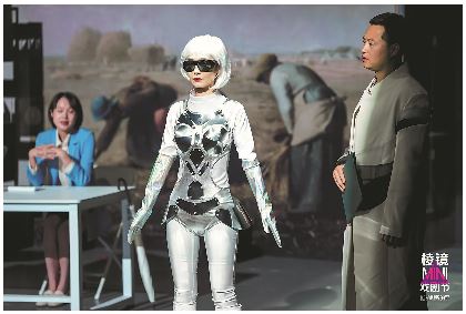 這種敘事性肢體表演給人以特別的驚艷感。以肢體表演完成敘事和抒情,這是一種純屬于戲劇的藝術手段。由活生生的演員完成的這種帶有抽象色彩的表現,也是AI題材電影所難以營造的舞臺詩意。