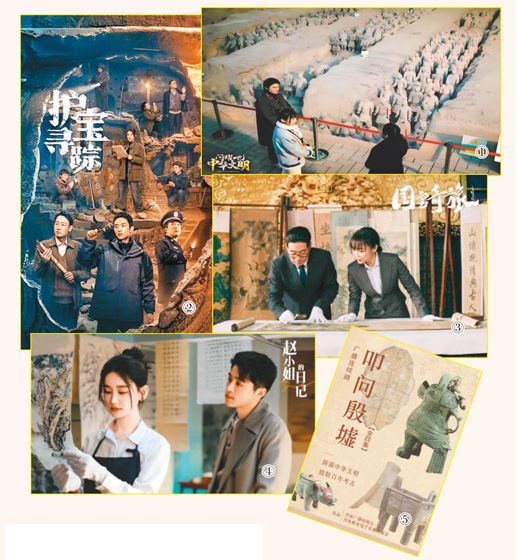 文物保護工作是一場集體合作,也需要智慧和勇氣。這一點在電視劇《九鼎謎蹤》中得到體現。劇中,考古隊長楊戰為找尋自西周后就不知所終的寶鼎,與數位奇才付出艱苦努力,終讓華夏瑰寶重見天光。文物保護工作是持續性的工作。《國寶奇旅》講述的故事發生在“九一八”事變后的北京,以主人公任弘毅和周若思為代表的愛國軍官和知識分子,為將故宮文物南遷,一路上從容應對日寇、國民政府貪官和幫會設置的陷阱,最終在中共地下黨協助下,保證了國寶安全完整地抵達目的地。