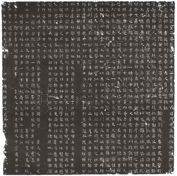 崔芷蘩去世在隋開皇二年(582),又是一個嶄新的時代,由于崔仲方的功績,博陵崔氏再度崛起。崔芷蘩的喪禮很可能是哥哥崔宣猷或侄子崔仲方主持完成。她的墓志尺寸達到驚人的81×82厘米,遠超家族中的男性成員。比如她的叔叔崔孝直的墓志尺寸是73×71厘米,哥哥崔宣度的墓志尺寸為63.5×64厘米。并且,《崔芷蘩墓志》的尺寸極有可能大于《李希仁墓志》。盡管《李希仁墓志》的具體情況尚未刊布,但李希仁的哥哥李希宗的墓志也不過62×62厘米。今已知尺寸最大的北朝女性墓志當屬《魏瑤光寺尼慈義墓志》,為83×84厘米。志主高英生前曾是北魏宣武帝元恪的皇后。換言之,崔芷蘩的墓志大小幾與皇后相近。但是她本人生前未曾得到任何加封,死后也沒有追贈,因此如此“異常”的尺寸只有可能出自喪家私人行為。也許是因為崔仲方新朝權貴的地位,也許是崔宣猷出于對最后一位姊妹的痛悼,《崔芷蘩墓志》才呈現出如今面貌。