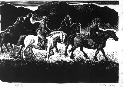 在民族存亡之際,古元決心離開故鄉(xiāng)奔赴延安,在當(dāng)時(shí)卻并非為了去學(xué)習(xí)藝術(shù),而是身為一名熱血青年,立志投身抗戰(zhàn)事業(yè),甚至不惜犧牲自己的生命。抵達(dá)延安后,古元首先進(jìn)入陜北公學(xué),接受了為期3個(gè)月的馬列主義理論培訓(xùn)。在此期間,他充分發(fā)揮美術(shù)才能,為學(xué)校宣傳報(bào)欄創(chuàng)作了大量宣傳畫。其出色的繪畫水平獲得教員賞識(shí),遂被推薦至魯藝美術(shù)系第三期學(xué)習(xí)。在美術(shù)系,古元學(xué)習(xí)并掌握了木刻技法,他深切感到,木刻是當(dāng)時(shí)最現(xiàn)實(shí)、最直接、最有力量的一種藝術(shù)表現(xiàn)方式。在這一領(lǐng)域,他很快展現(xiàn)出非凡的藝術(shù)才華,創(chuàng)作了《運(yùn)草》《挑水》《圣經(jīng)的時(shí)代過去了》《離婚訴》等一批優(yōu)秀木刻作品。