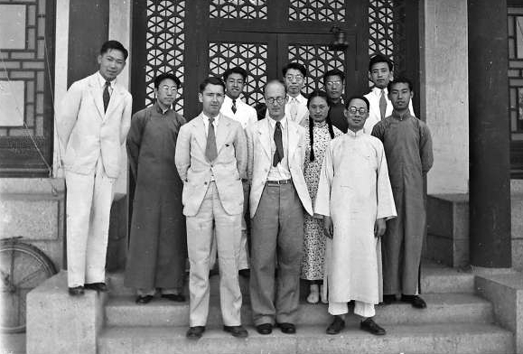 20世紀30年代,林邁可(前排左二)、李效黎與燕大師生的合影。