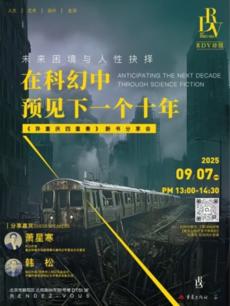 9月7日,科幻作家蕭星寒攜新作《異重慶四重奏》,與科幻文學領軍人物韓松在北京DT51 RENDEZ-VOUS書店展開深度對談,兩位重慶籍科幻作家以“未來困境與人性抉擇:在科幻中預見下一個十年”為主題,以線上和線下的方式帶領觀眾開啟了一場穿越現實與未來的思辨之旅。