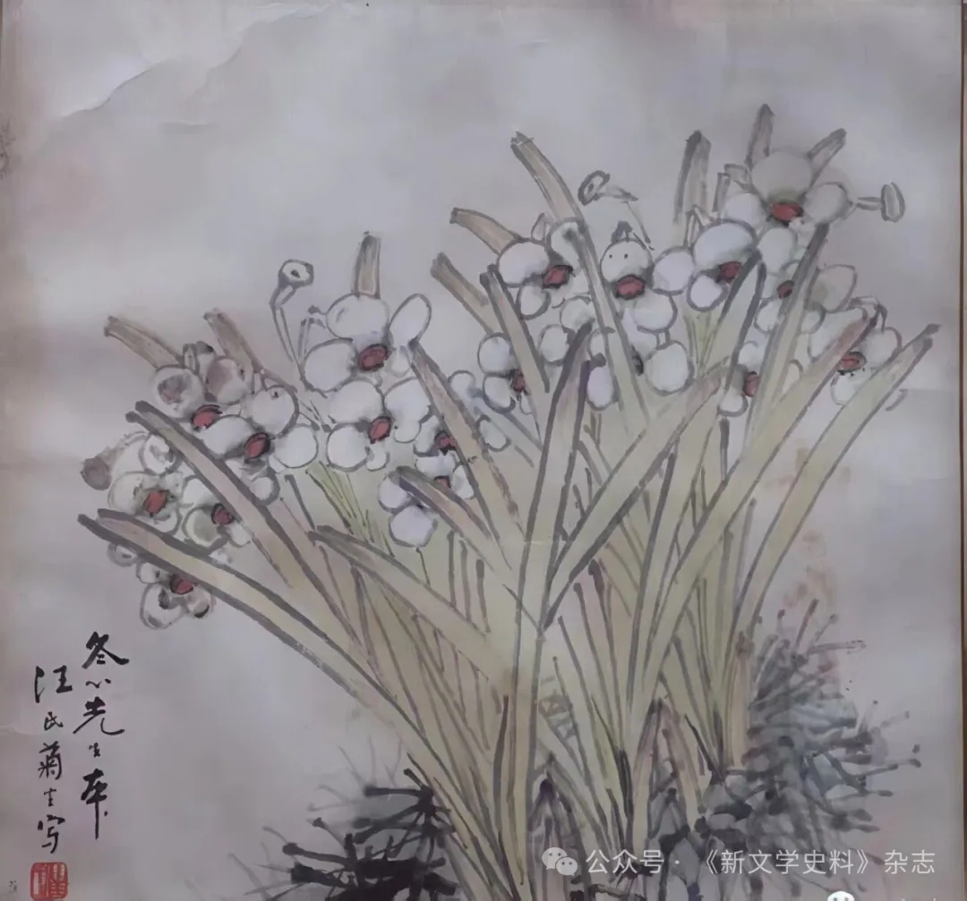 汪曾祺父親汪菊生是位眼科醫生,家鄉流傳著他許多醫者仁心的故事,且多才多藝,亦是一位畫家,我于偶然中得到一幅他畫的“水仙圖”。