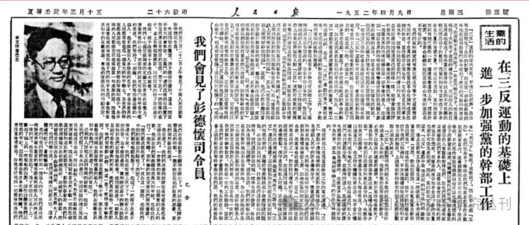 巴金 《我們會見了彭德懷司令員》,《人民日報》1952年4月9日