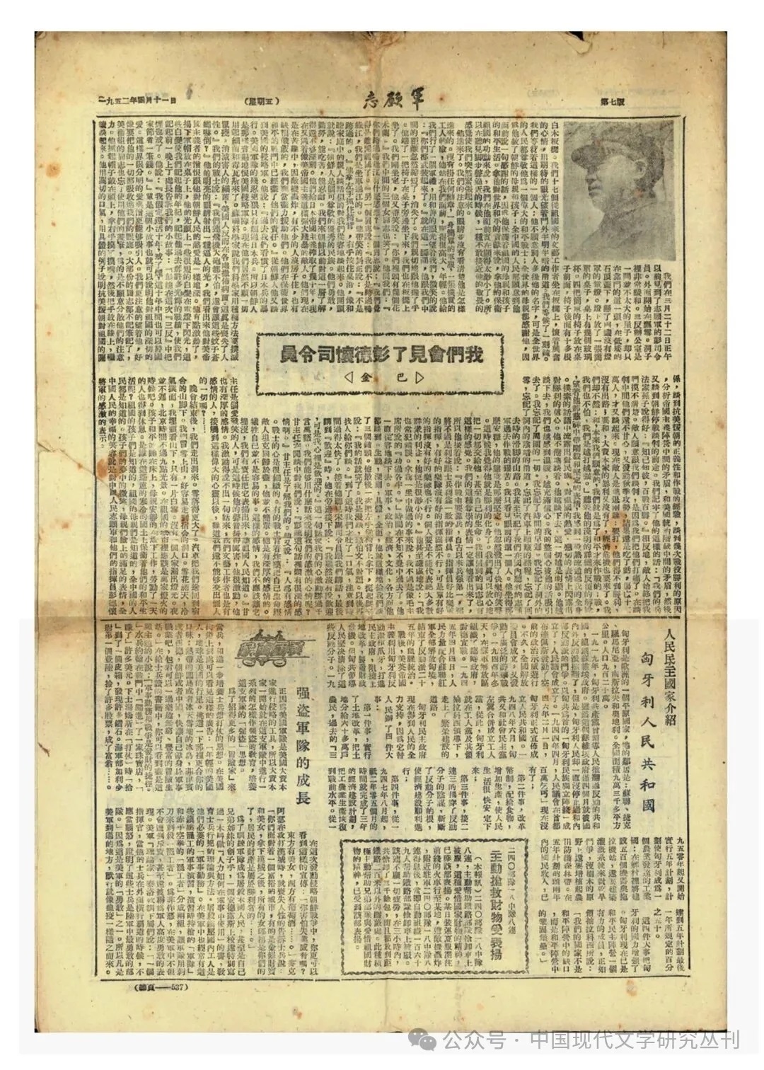 巴金 《我們會見了彭德懷司令員》,《志愿軍》報1952年4月11日