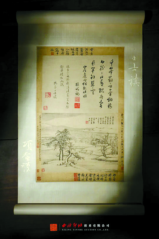 2025西泠秋拍項圣謨《寒江深雪圖》一幅,據(jù)“辛卯春三月寫于西子湖上”落款,知為順治八年(1651)春所作,時項圣謨五十五歲。圖有曹爾堪、周廷鑨、吳嘉紀、吳山、王士禛題跋。王漁洋題:“深雪寒林,斷橋漁浦,蓑笠而獨釣者,彼何人歟?”鈐“钑鏤王家”陰陽印。看到拍賣網(wǎng)頁的宣傳詞“最盛年的項圣謨,十八歲的王士禎,同賞西湖雪景”,我甚為錯愕。十八歲的王士禛尚在鄉(xiāng)里讀書,并且終其身未踐杭城之土,何來與項圣謨同賞西湖雪景之事?說明中又強調(diào):“此跋應(yīng)是市場所見王士禎最年少的墨跡,跋后所鈐‘钑鏤王家’朱白印十分罕見,或為其家族印章。”此跋果真為漁洋十八歲所作嗎?絕無可能。